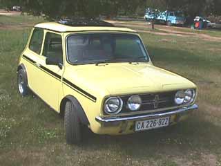 The brake system is robbed from a late model cooper and I run 12" rims with 165X60X12 bridgestones. It has a decent LCB with HIF44 carb from the turbo and min spares gasflowed inlet.